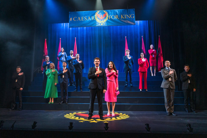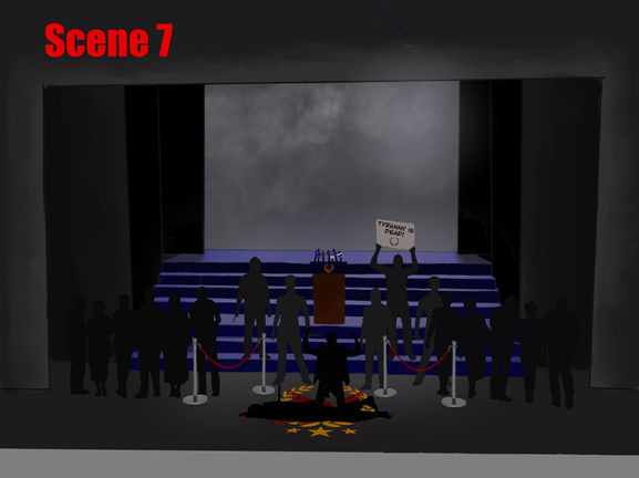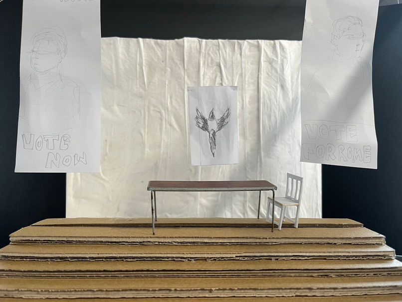 The set design for Julius Caesar was created for the End on Theatre, Richard Burton, in Cardiff. Shakespeare’s drama about the meteoric rise to power and subsequent assassination of the iconic Roman dictator, Julius Caesar, asks us to consider patriotism versus personal ambition. This production of Julius Caesar lives in a world similar to the world we currently live in. Surrounded by the anxiety of politics and the abuse of power, the play is recognizable across many places across the world. However, with many of the references stemming from modern politics in America